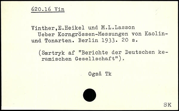Vinther,E.Heikel und M.L.Lasson Ueber Korngrossen-Messungen von Kaolin-und Tonarten.