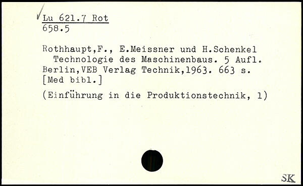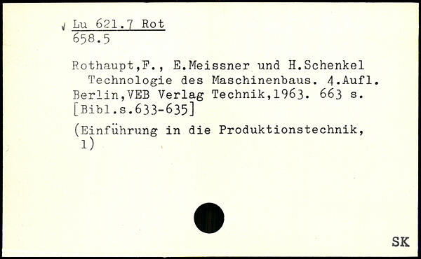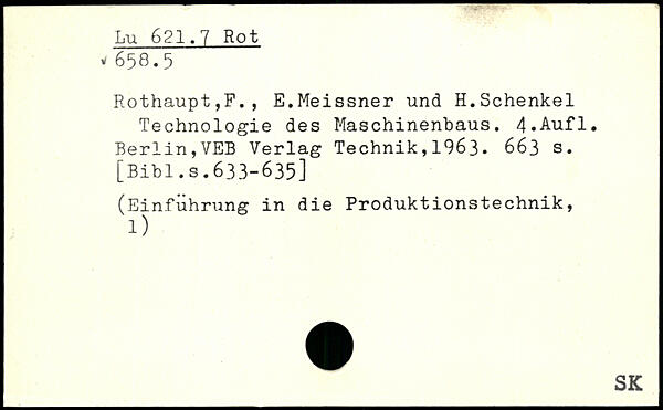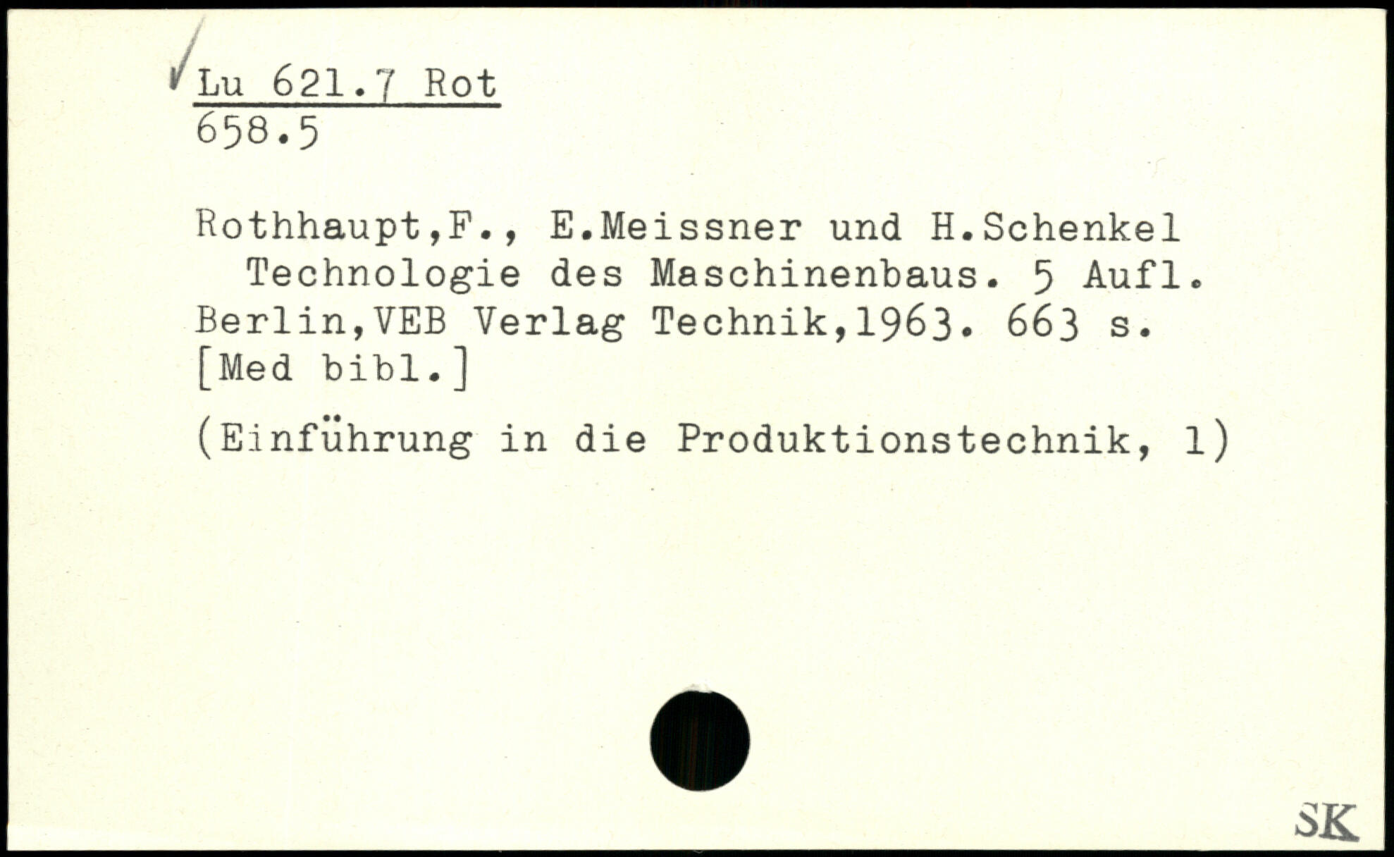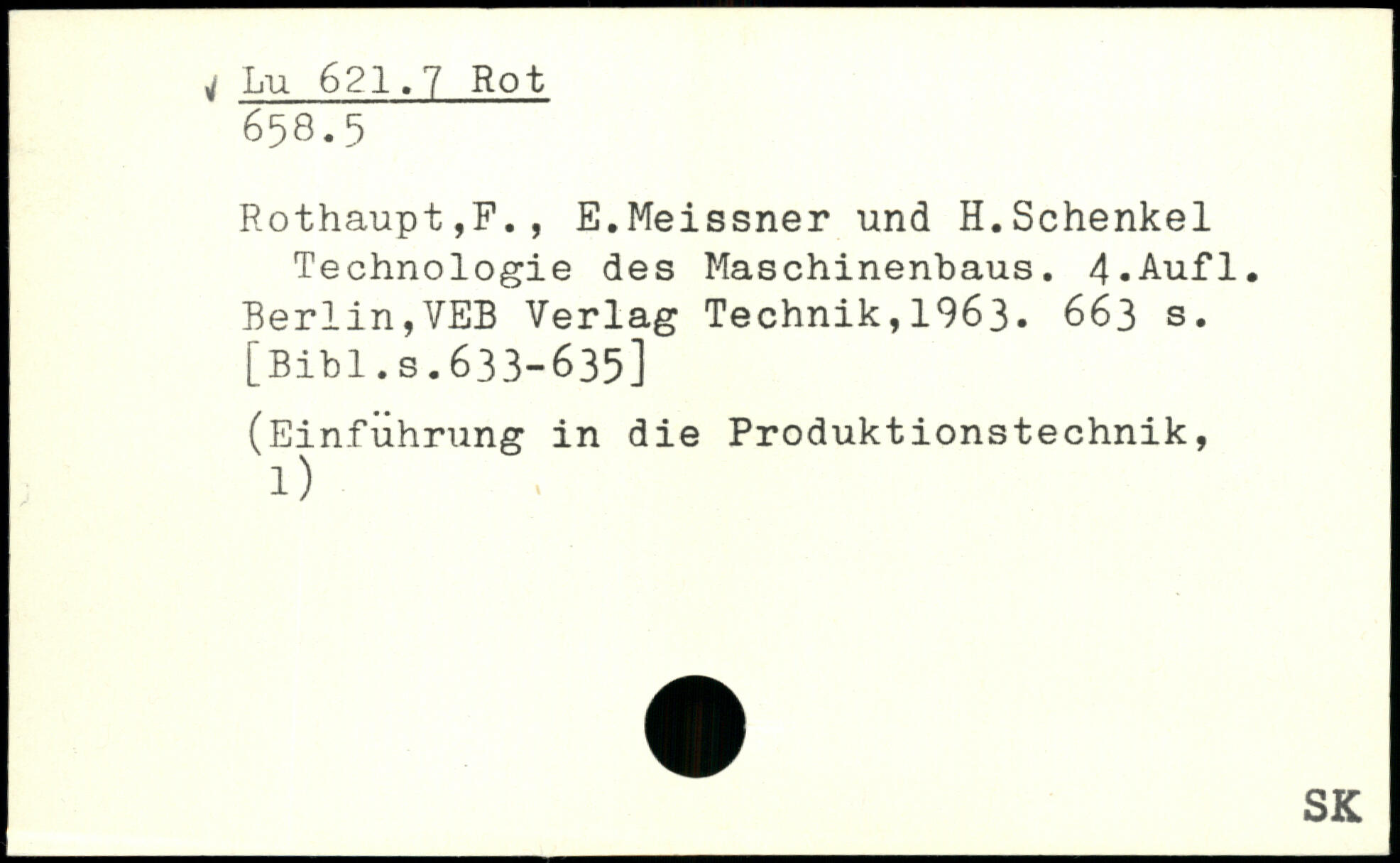 Rothaupt,F., E.Meissner und H.Schenkel Technologie des Maschinenbaus.