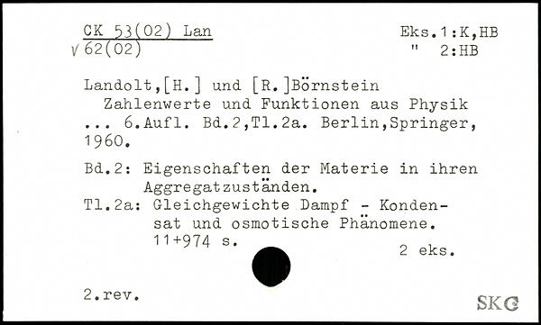 Landolt,[H.] und [R.Jßörnstein Zahlenwerte und Funktionen aus Physik ...