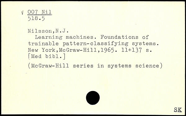 Ni1s s on,N.J. Learning machines. Foundations of trainable pattern-classifying systems.
