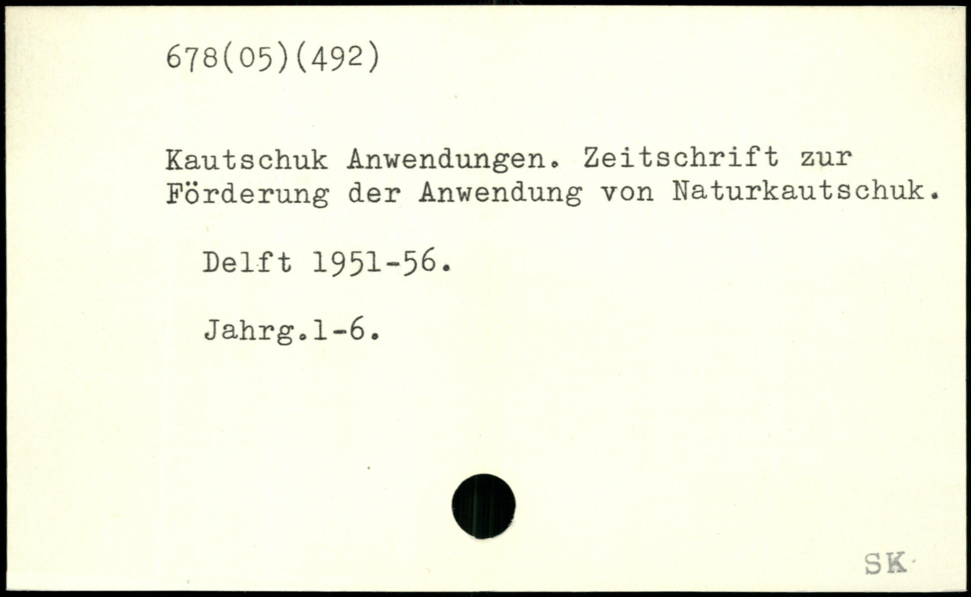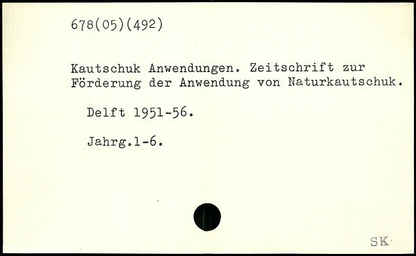 Kautschuk Anwendungen. Zeitschrift zur Förderung der Anwendung von Naturkautschuk. helft 1951-56. Jahrg.1-6.