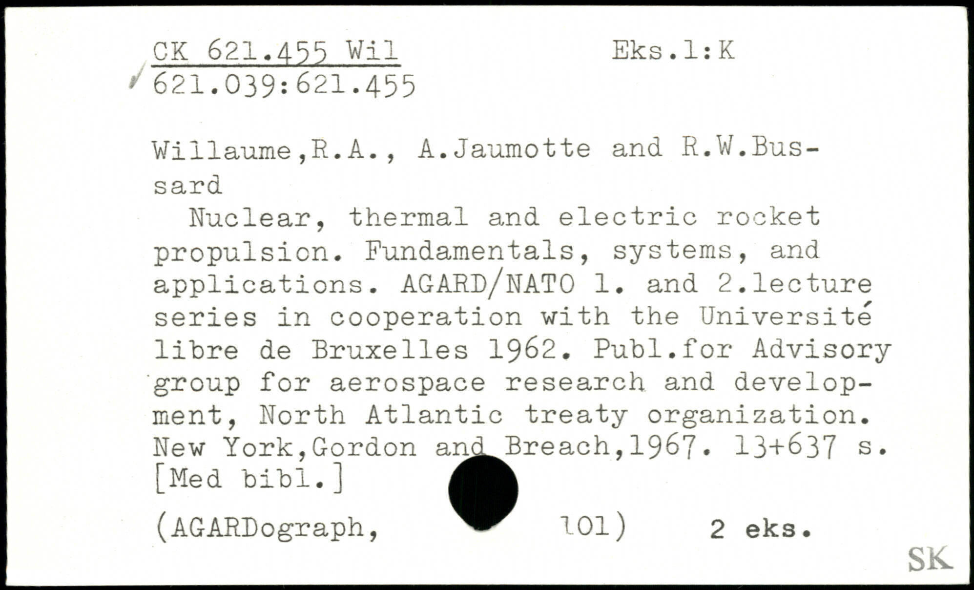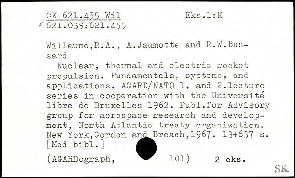 Nuclear, thermal and electric rocket propulsion. Fundamentals, systems, and applications. AGARD/NATO 1. and 2.lecture series in cooperation with the Université libre de