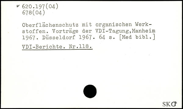 Oberflächenschutz mit organischen Werkstoffen. Vorträge der VDI-Tagung,Manheim 1967. Düsseldorf 1967