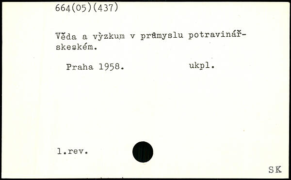 Veda a vyzkujn v pr&myslu potravinar-skeském.