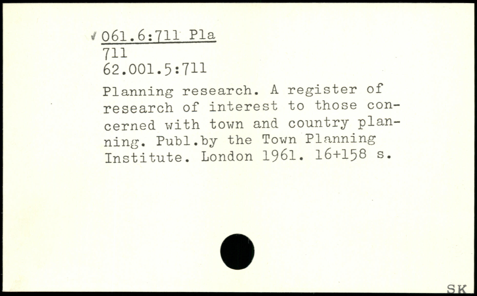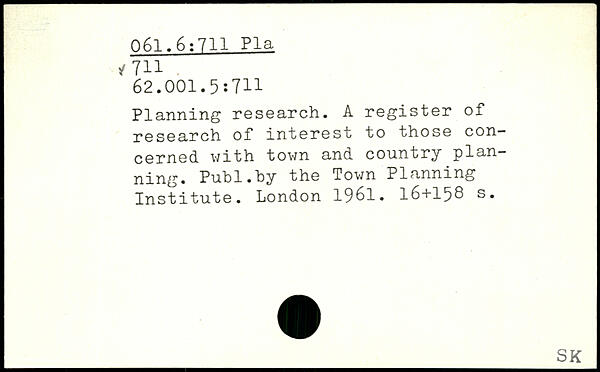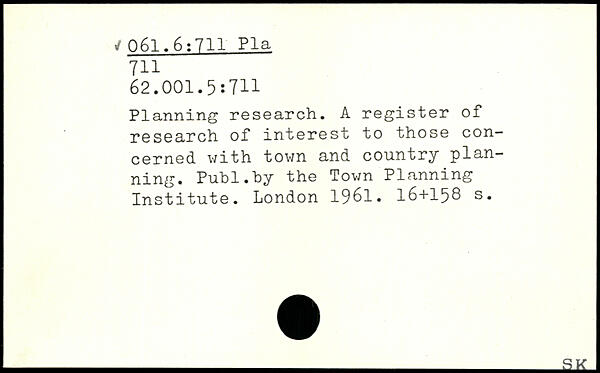 Planning research. A register of research of interest to those concerned with town and country planning. Publ.hy the Town Planning Institute.