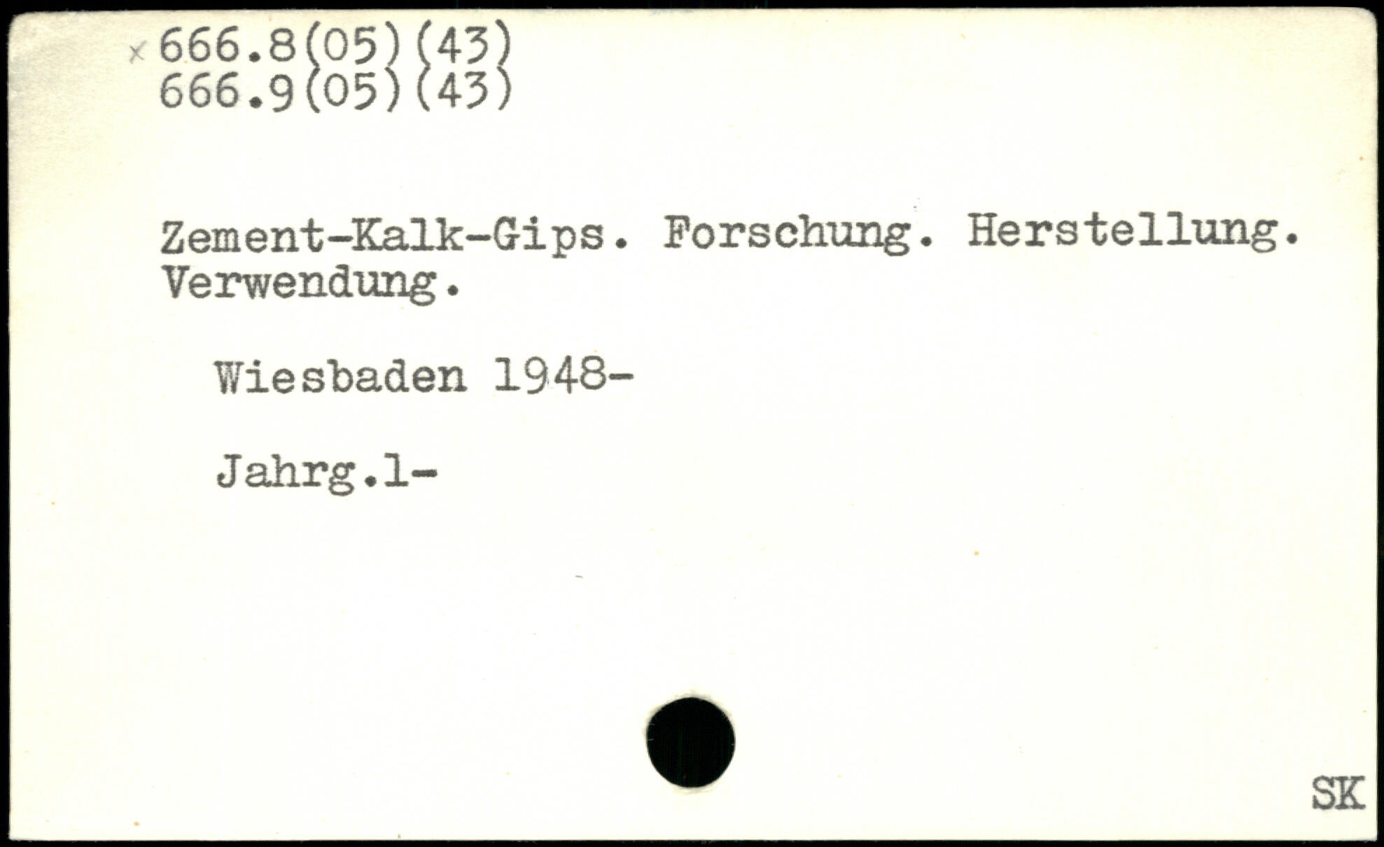 Zement-Kalk-Gips. Forschung. Herstellung. Verwendung. Y/iesbaden 1948- Jahrg.l- w SK