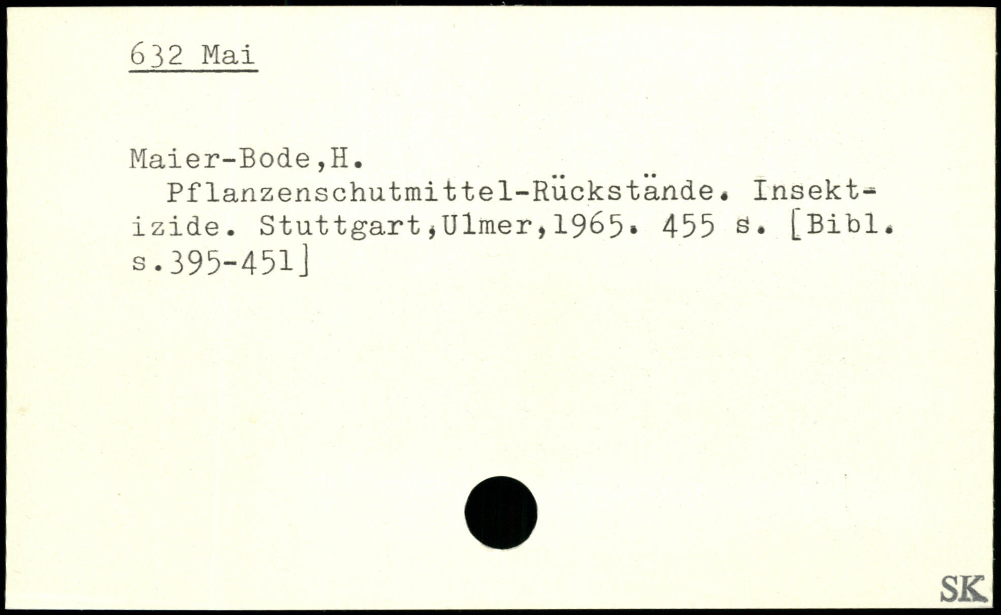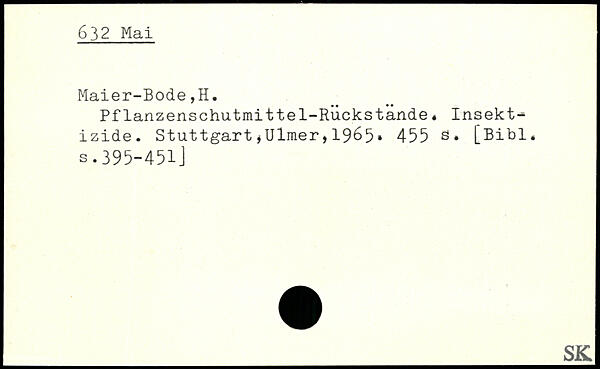 Pflanzenschutmittel-Ruckstande. Insektizide. StuttgartjUlmer,1965, 455 ö.