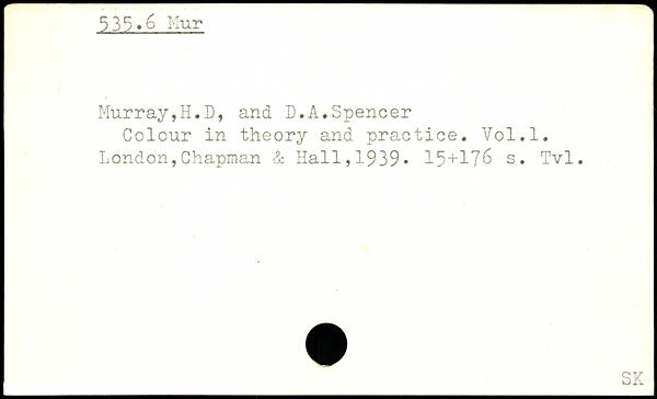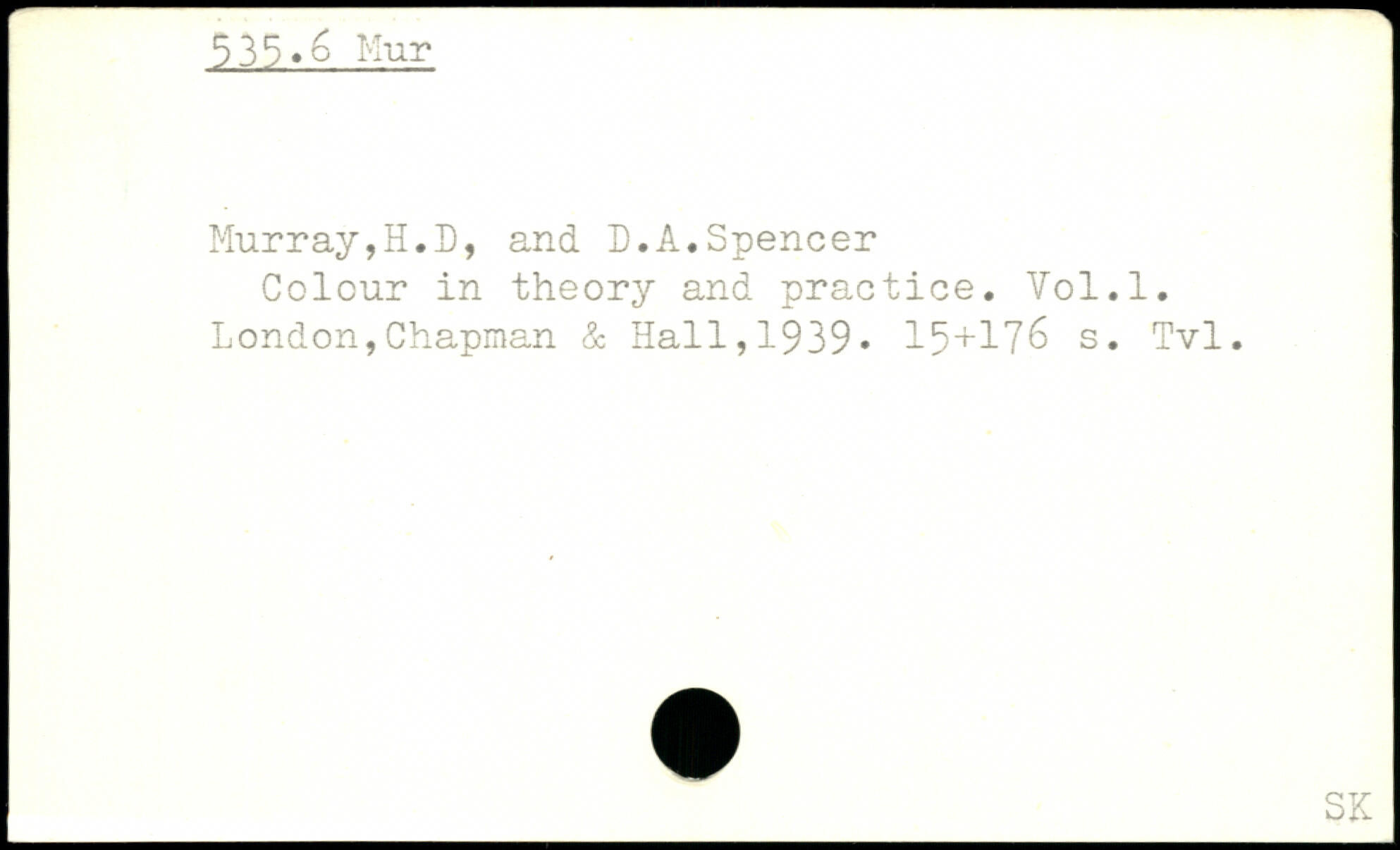 Murray,H.D, and D.A.Spencer Colour in theory and practice.