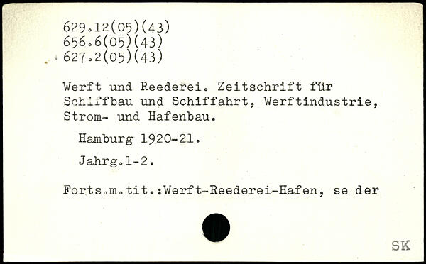 Werft und Reederei. Zeitschrift für Schiffbau und Schiffahrt, Werftindustrie, Strom- und Hafenbau. Hamburg 19.20-21. Jahrg.1-2. Forts0motit.;Werft-Reederei-Hafen, se der _.