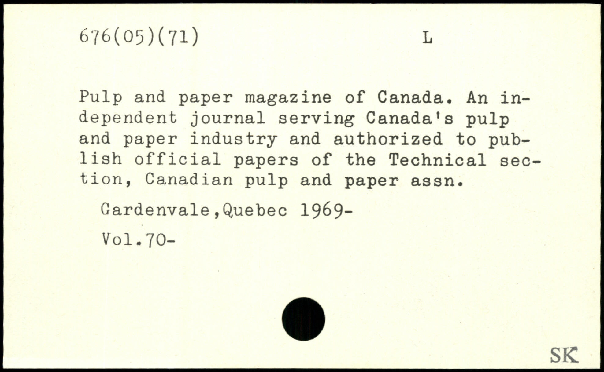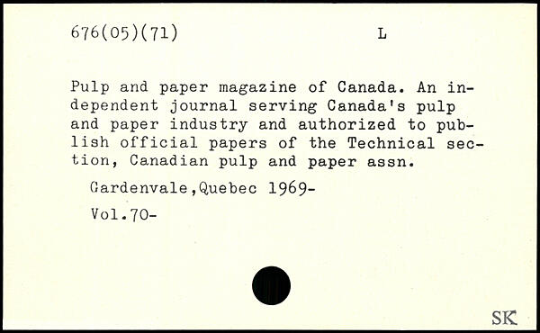 Pulp and paper magazine of Canada. An independent journal serving Canada's pulp and paper industry and authorized to publish official papers of the Technical section, Canadian pulp and paper assn. Gardenvale,Quebec 1969-