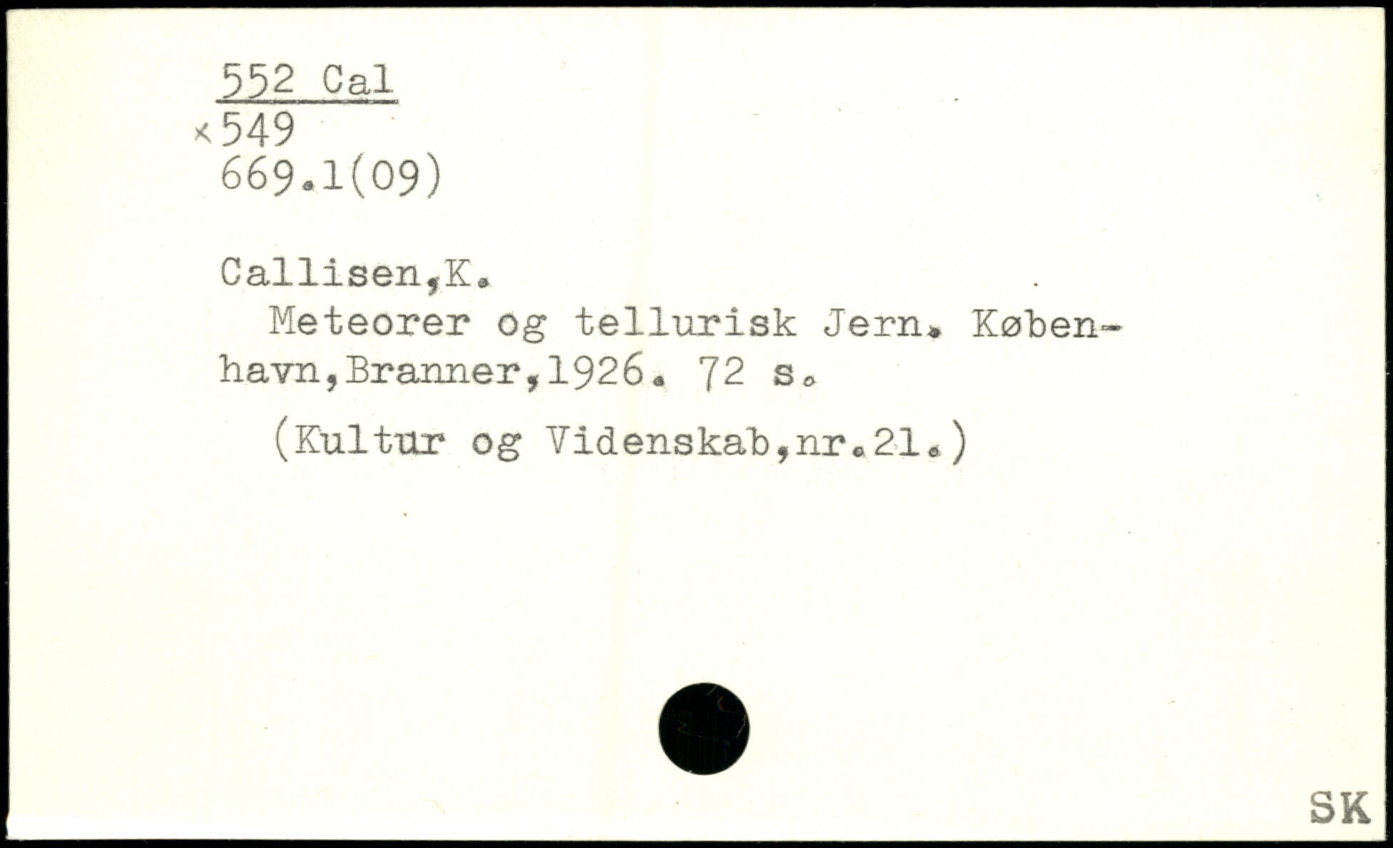 Meteorer og tellurisk Jern. København, Branner, 192 6.
