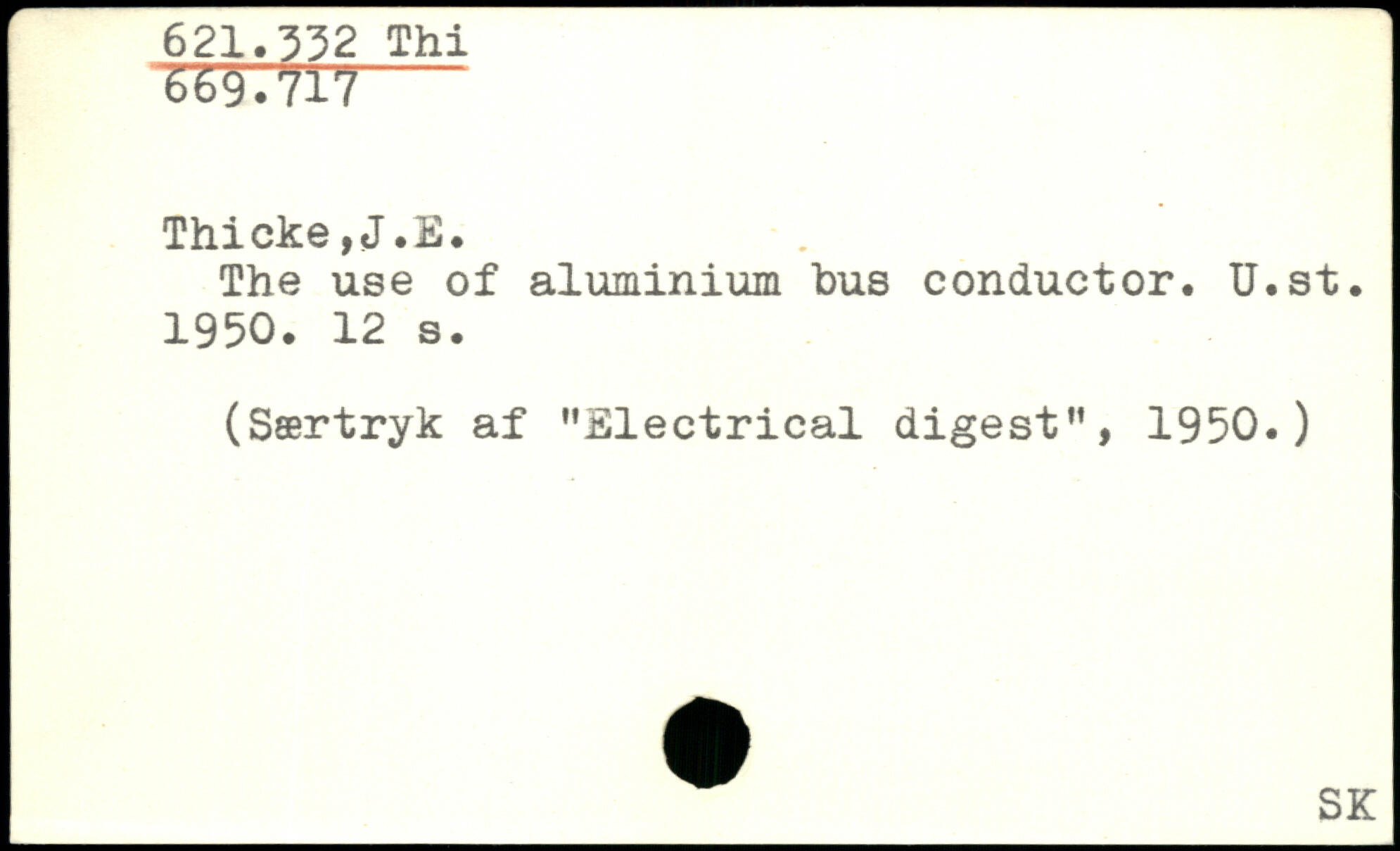 The use of aluminium bus conductor. U.st. 1950.