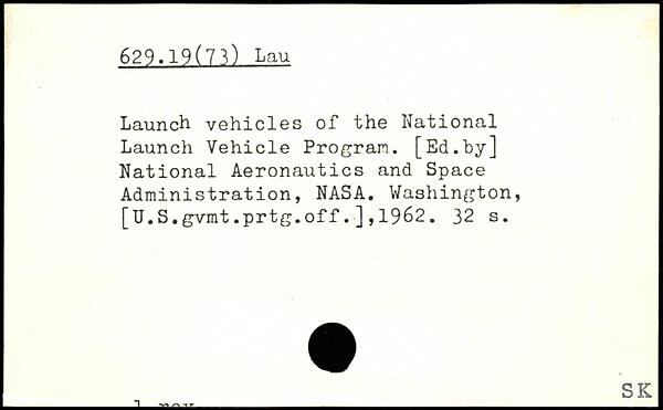 Launch vehicles of the National Launch Vehicle Program. [Ed.by] National Aeronautics and Space Administration, NASA. Washington