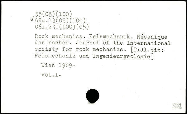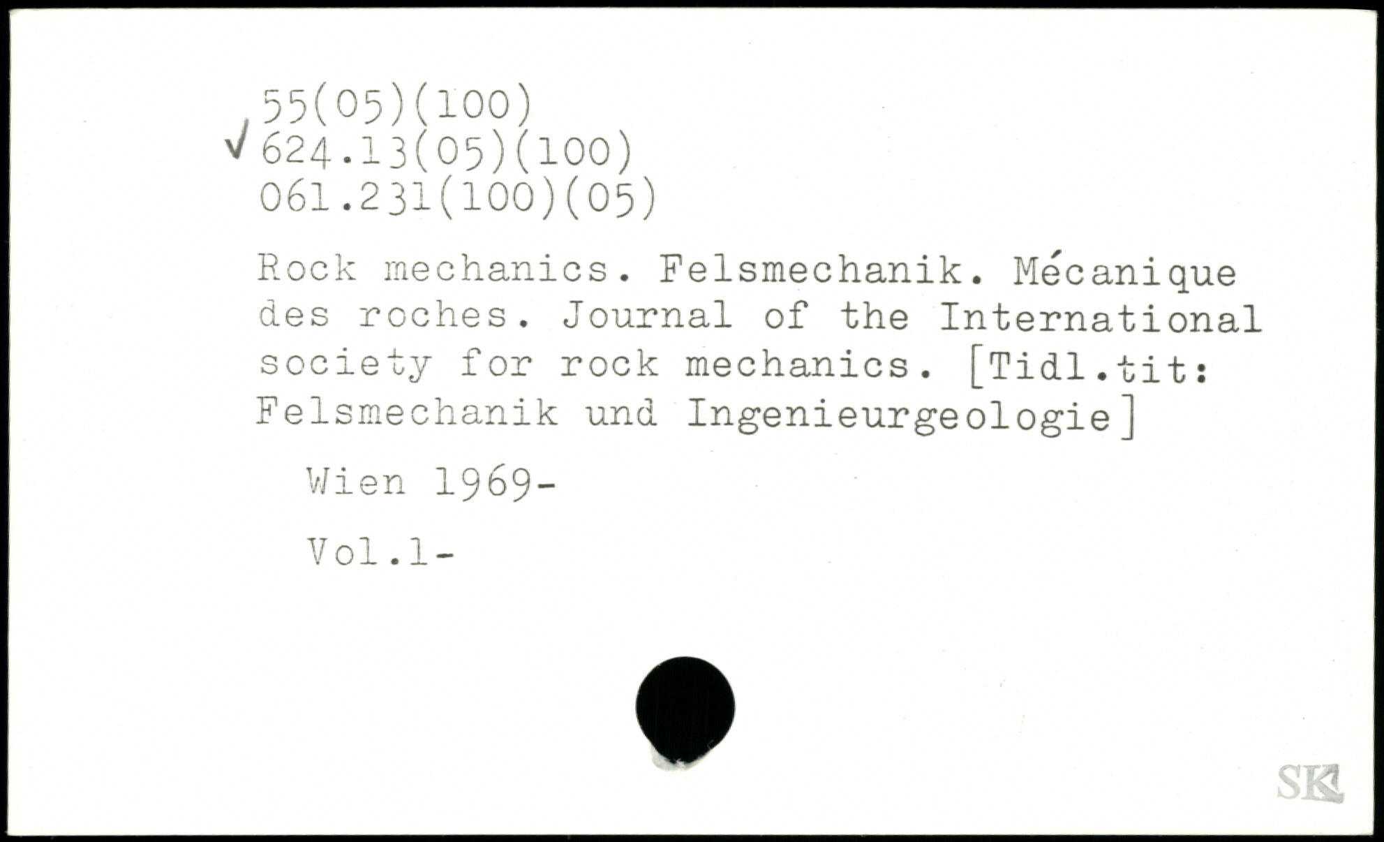 Rock mechanics. Felsmechanik. Mécanique des roches. Journal of the International society for rock mechanics. [Tidl.tit: Felsmechanik und Ingenieurgeologie] V/ien 1969-