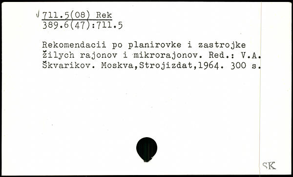Rekomendacii po planirovke i zastrojke zilych rajonov i mikrorajonov. Red.: V.A. Skvarikov.