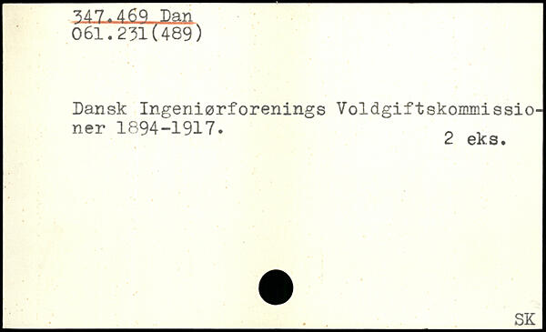 Dansk Ingeniørforenings Voldgiftskommissio-,.r 1894-1917. 2 ,ks. ; _ _sk