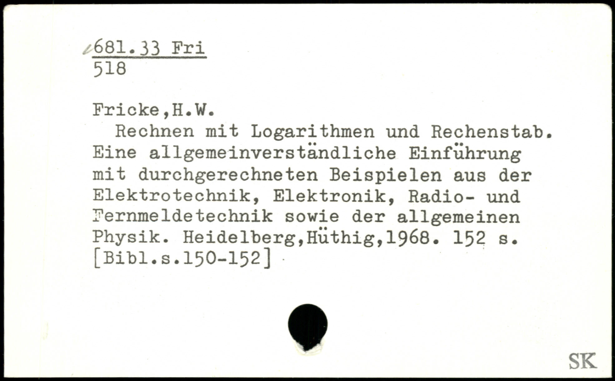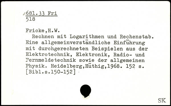 Rechnen mit Logarithmen und Rechenstab. Eine allgemeinverständliche Einführung mit durchgerechneten Beispielen aus der Elektrotechnik, Elektronik, Radio- und Fernmeldetechnik sowie der allgemeinen Physik. Heidelberg,HÜthig,1968.