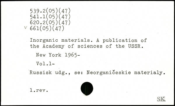 Inorganic materials. A publication of the Academy of sciences of the USSR.