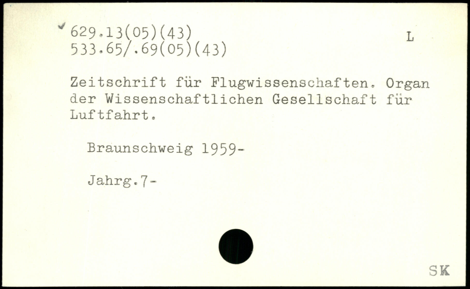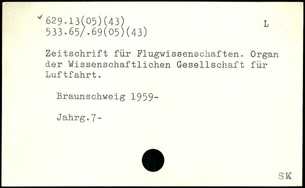 Zeitschrift für Flugwissenschaften, Organ der Wissenschaftlichen Gesellschaft für Luftfahrt, Braunschweig 1959- Jahrg.7-
