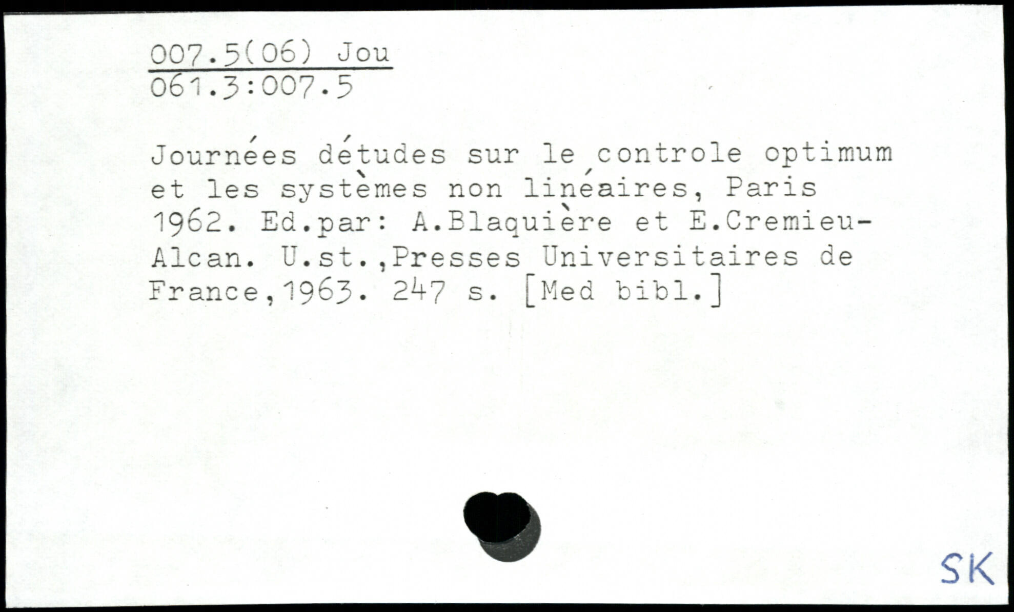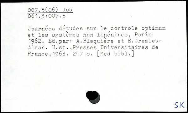 Journées détudes sur le contrôle optimum \ / t et les systèmes non linéaires