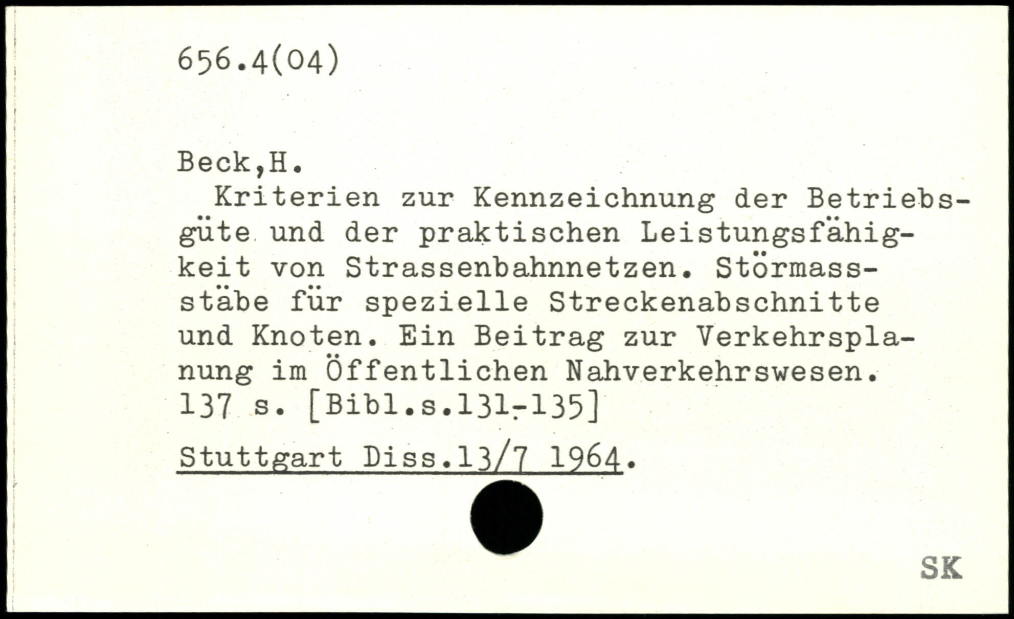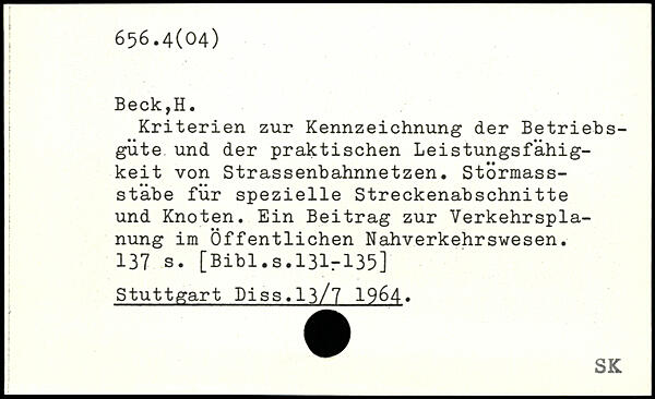 Kriterien zur Kennzeichnung der Betriebsgüte und der praktischen Leistungsfähigkeit von Strassenbahnnetzen. Störmass-stäbe für spezielle Streckenabschnitte und Knoten. Ein Beitrag zur Verkehrsplanung im Öffentlichen Nahverkehrswesen.