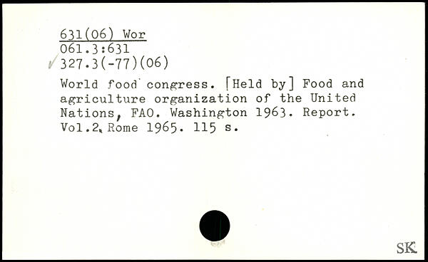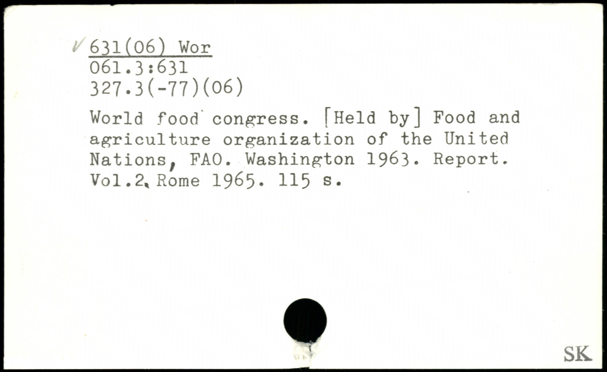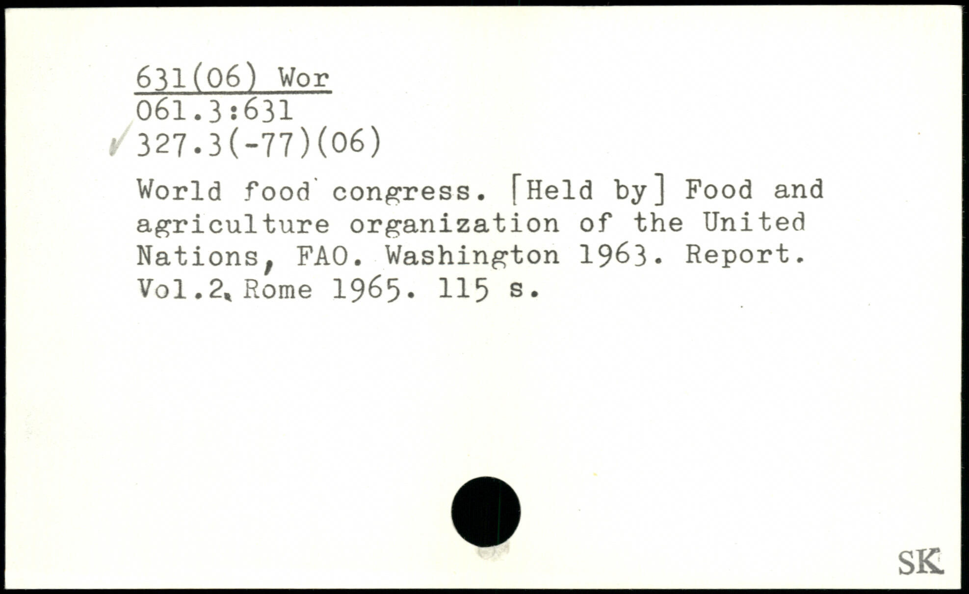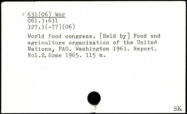 World food congress. [Held by] Food and agriculture organization of the United Nations, FAO.