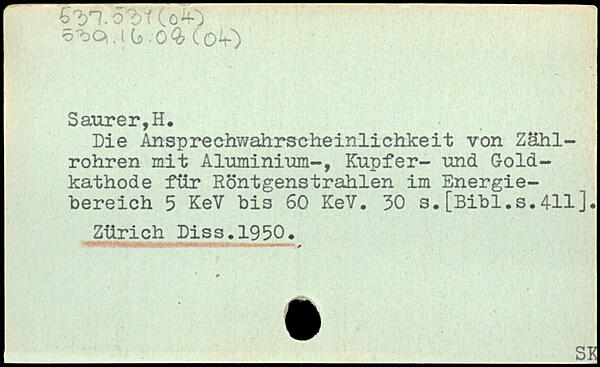 Die Ansprech?/ahrscheinlichkeit von Zählrohren mit Aluminium-, Kupfer- und üold-kathode für Röntgenstrahlen im Energiebereich 5 KeV bis 60 KeV.