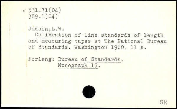 Judson,LoWa Calibration of line standards of length and measuring tapes at The National Bureau of Standards.