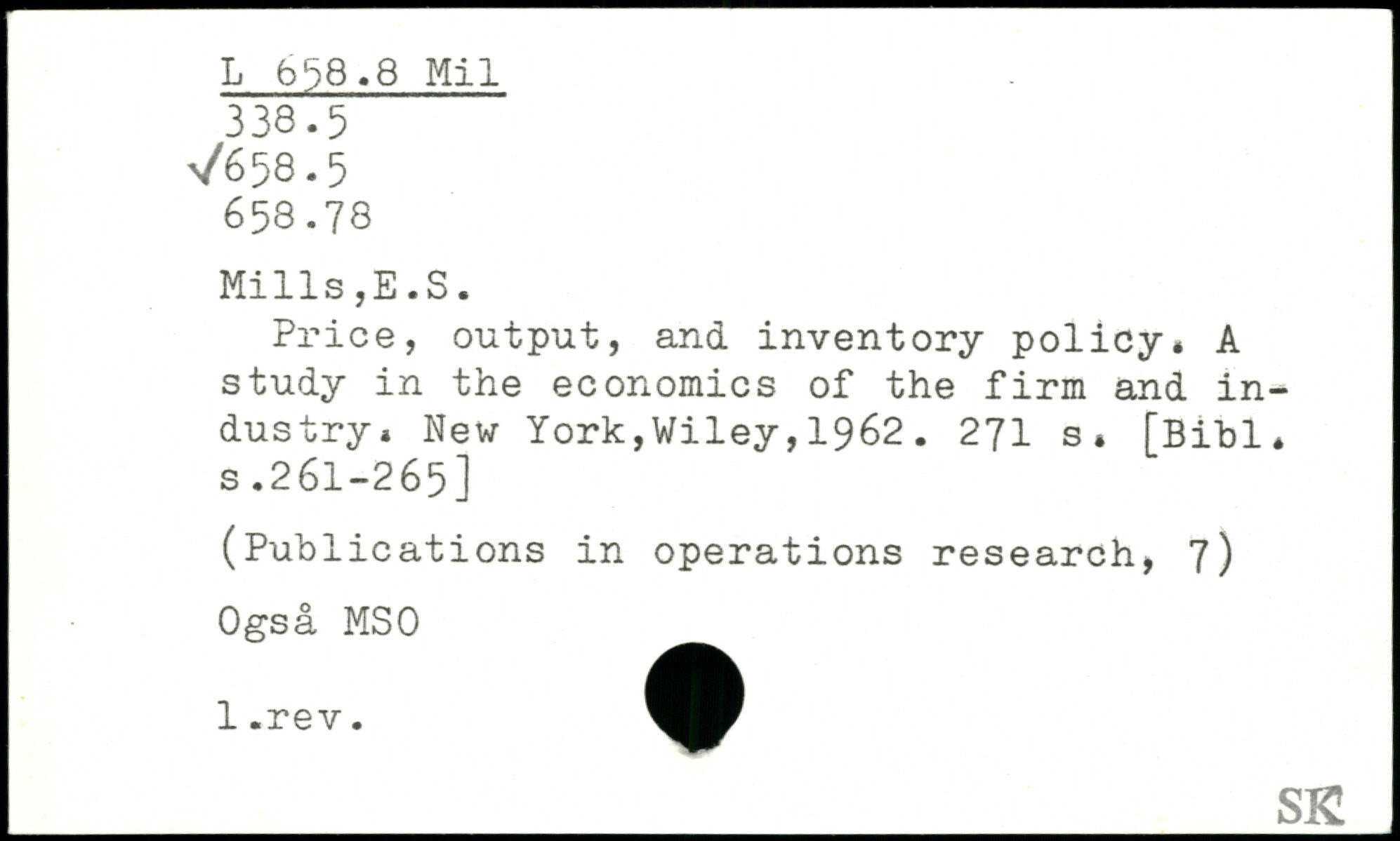 Price, output, and inventory policy. A study in the economics of the firm and industry.