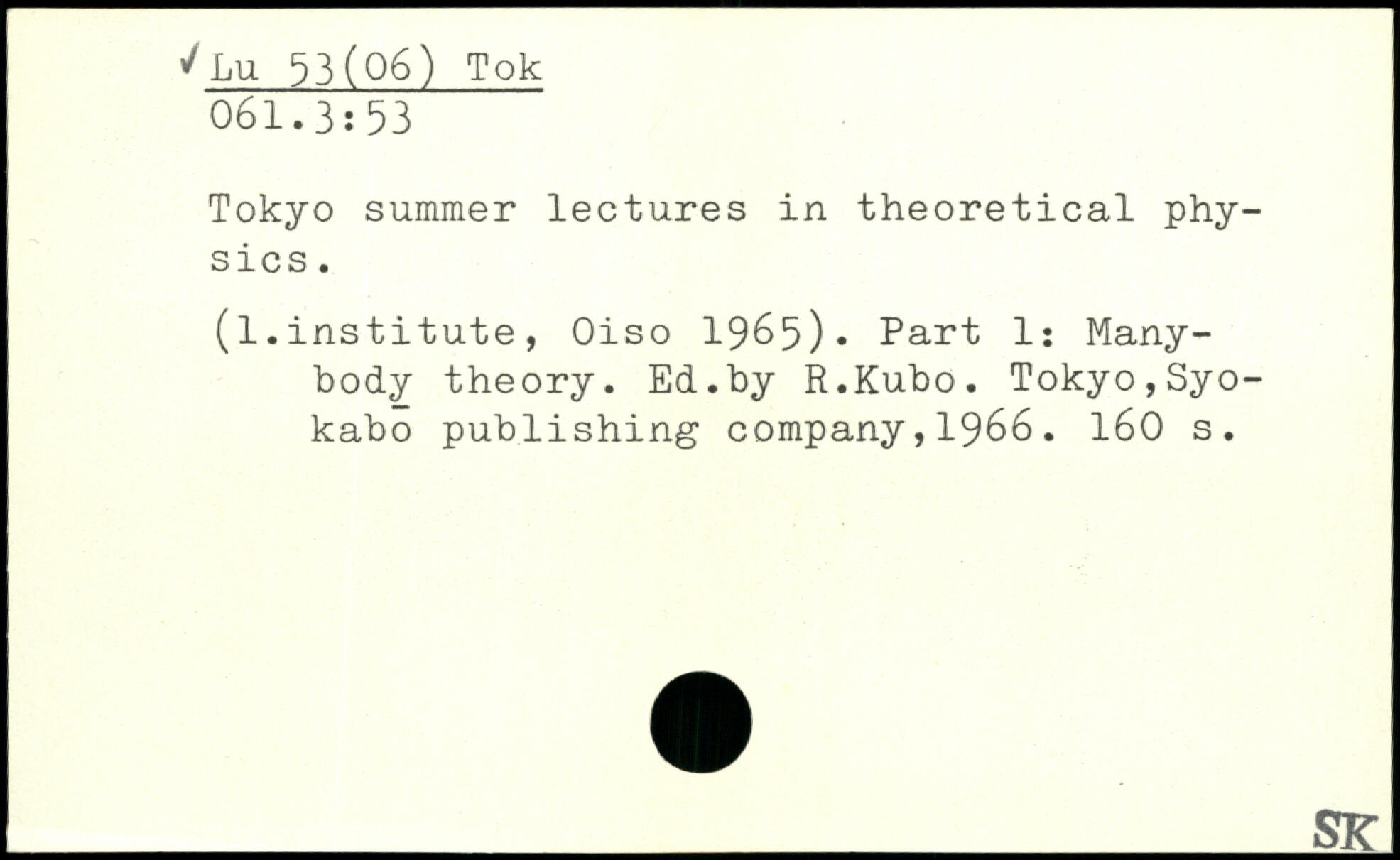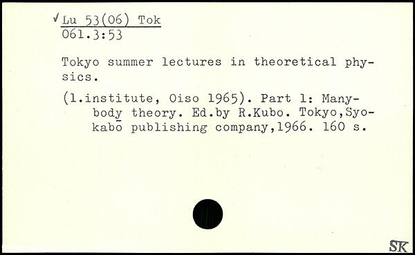 Tokyo summer lectures in theoretical physics. (1.institute, Oiso 1965). Part 1: Many-hody theory. Ed.by R.Kubo.