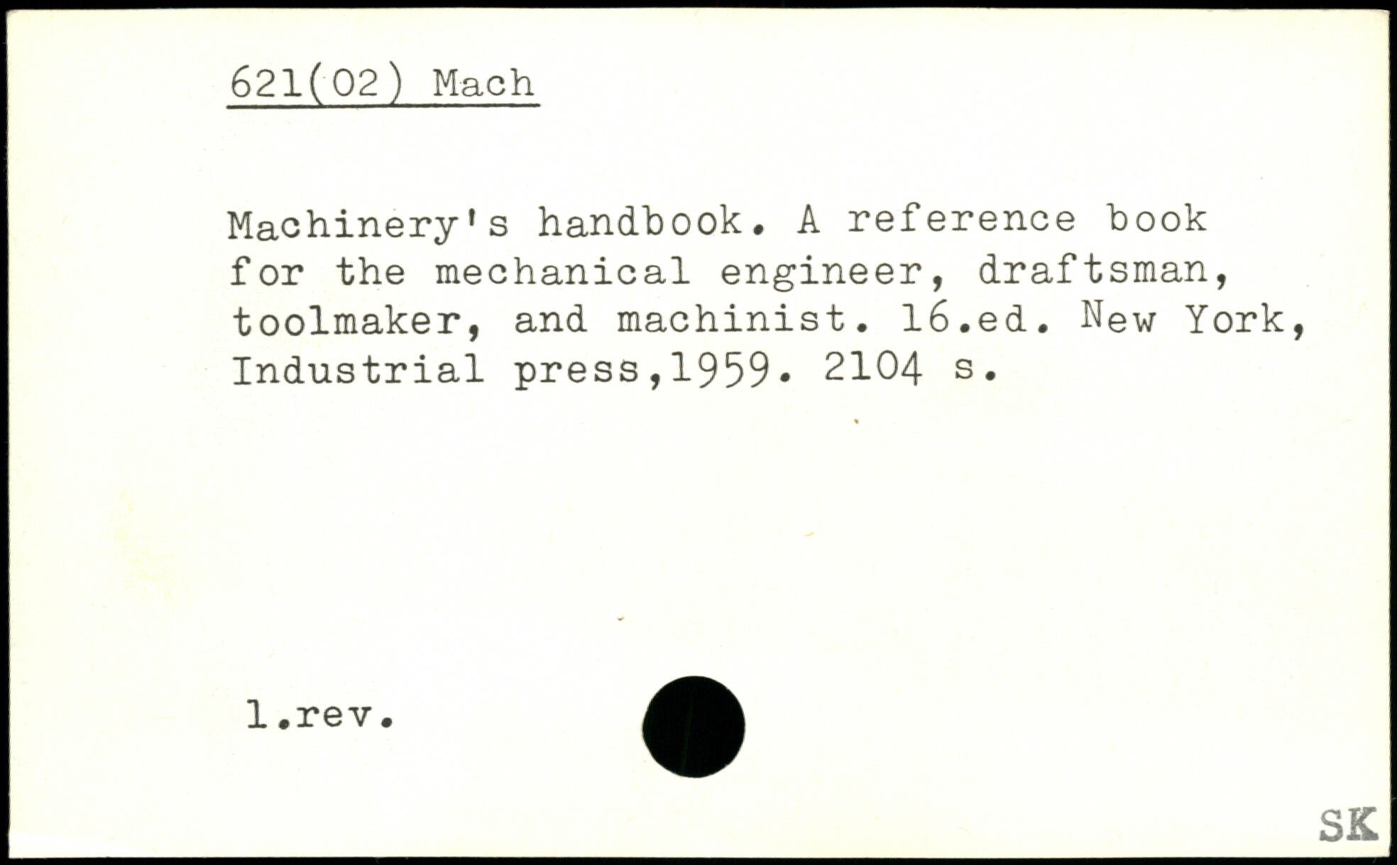 Machinery’s handbook. A reference book for the mechanical engineer, draftsman, toolmaker, and machinist.