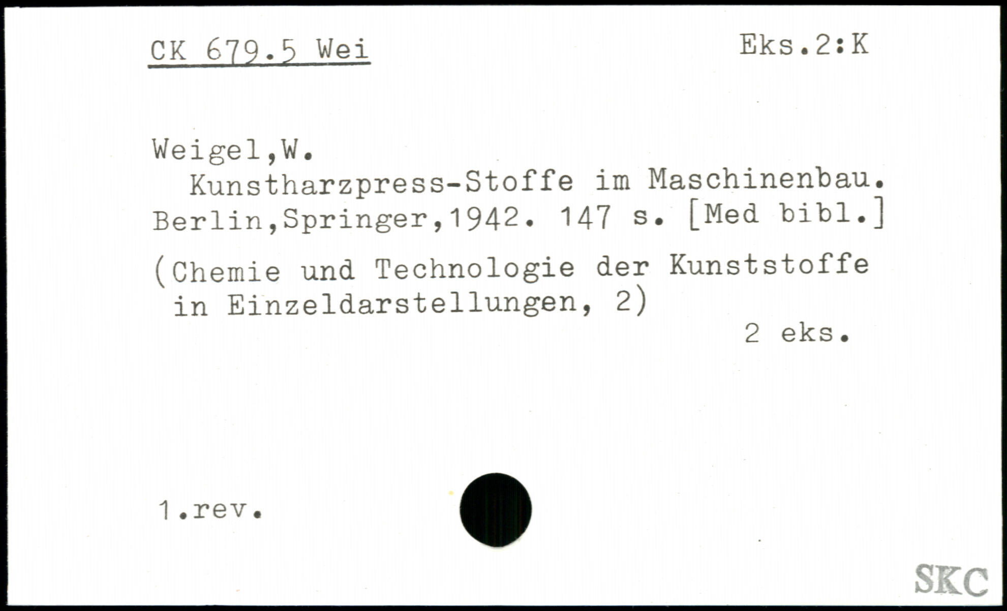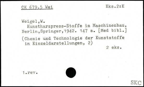 Kunstharzpress-Stoffe im Maschinenbau. Berlin,Springer, 1 942.