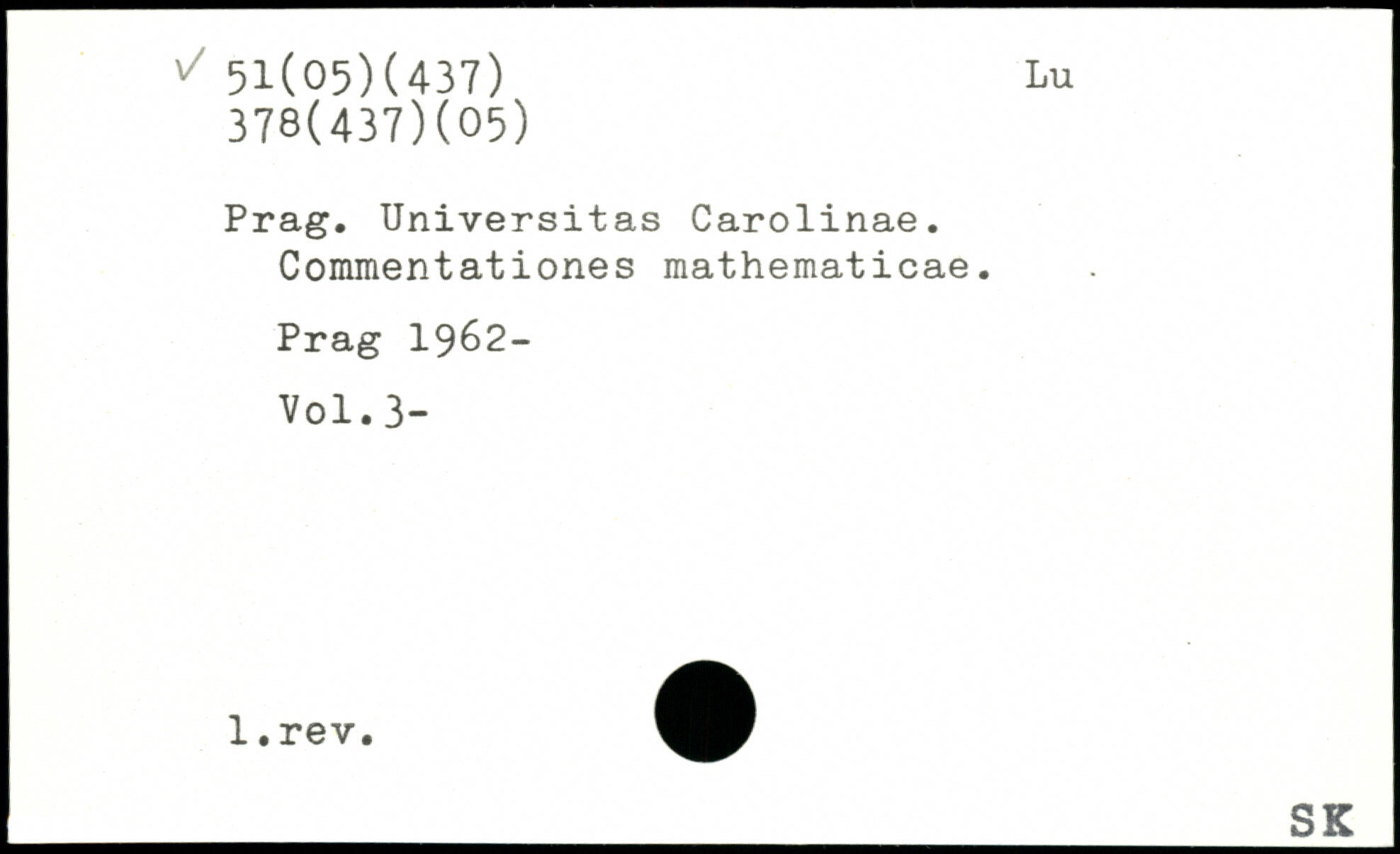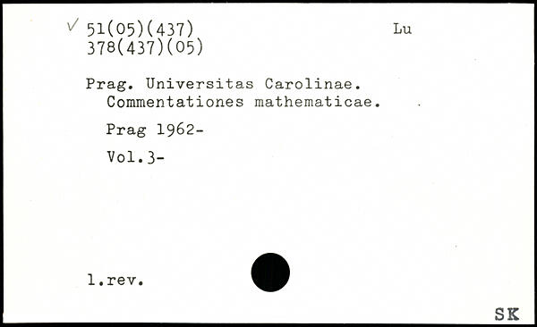 Prag. Universitas Carolinae. Comraentationes mathematicae. Prag 1962-