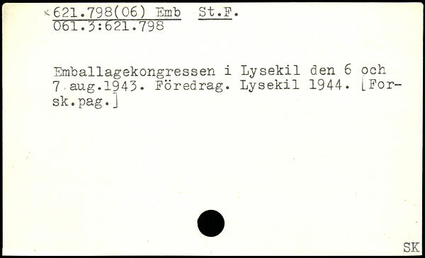 Emballagekongressen i Lysekil den 6 och 7-aug.1943. Föredrag. Lysekil 1944. LEor-sk.pag.J