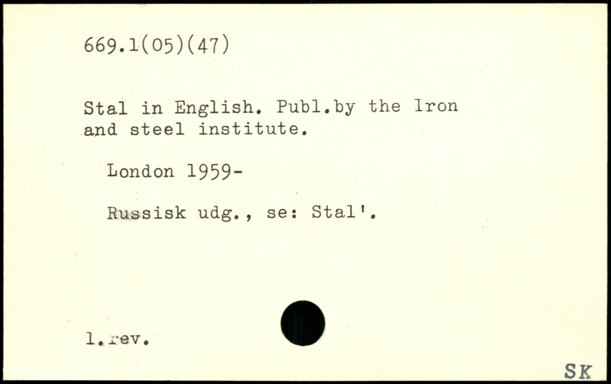 Stal in English. Publ.hy the Iron and steel institute.