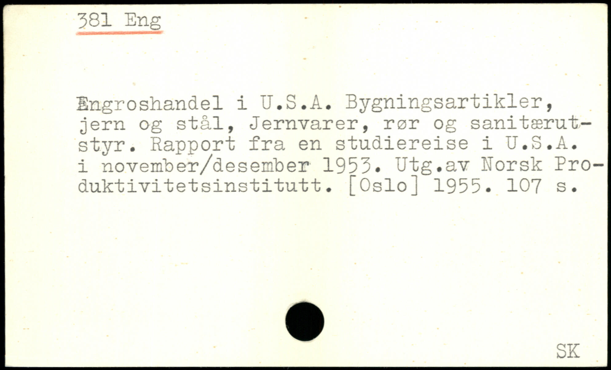 Engroshandel i U.S.A. Bygningsartikler, jern og stål, Jernvarer, rør og sanitærut-styr. Rapport fra en studiereise i U.S.A. i november/desember 1953. Utg.av Uorsk Produktivitetsinstitutt. [Oslo] 1955.