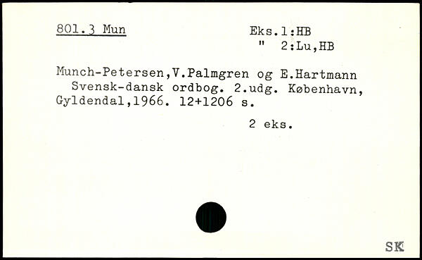 Munch-Petersen,V.Palmgren og E.Hartmann Svensk-dansk ordbog.