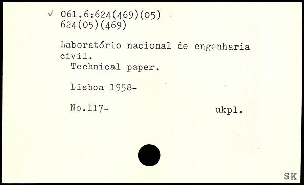 Laboratorio nacional de engenharia civil. Technical paper. Lisboa 1950- No. 117- ukpl.