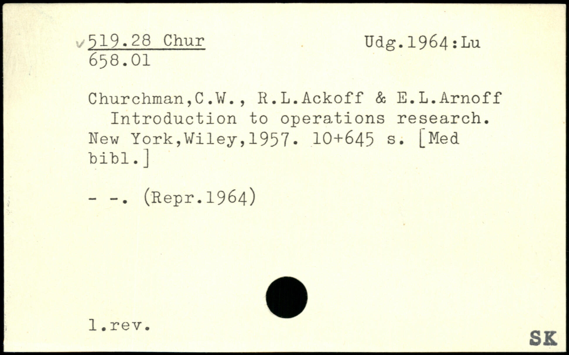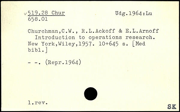 Churchman,C, R.L.Ackoff & E.L.Arnoff Introduction to operations research.