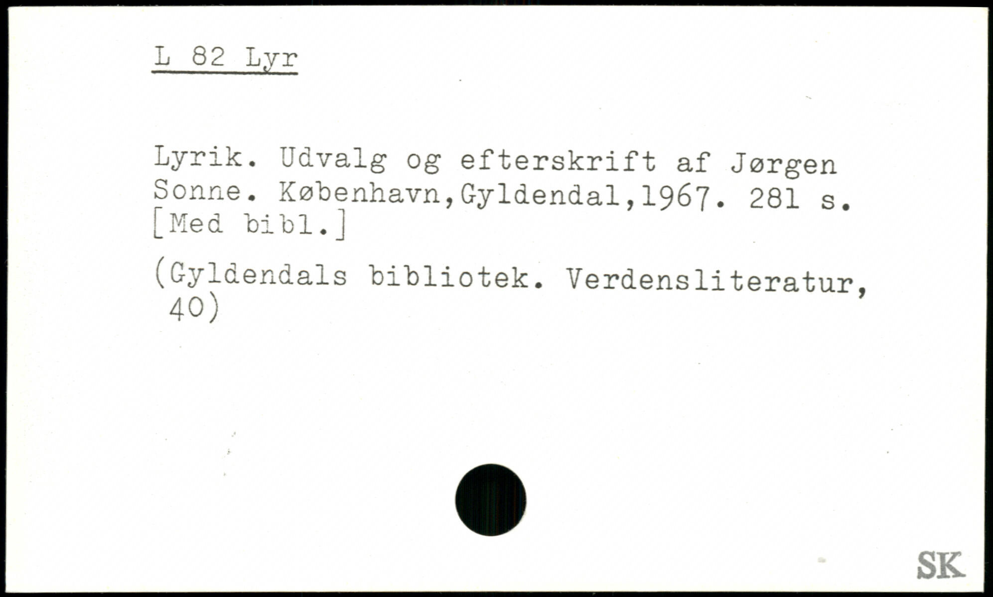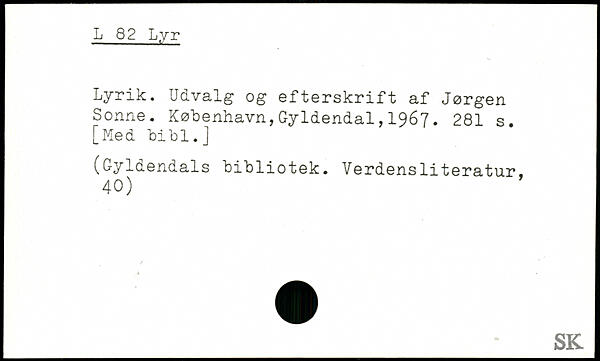 Lyrik. Udvalg og efterskrift af Jørgen Sonne.