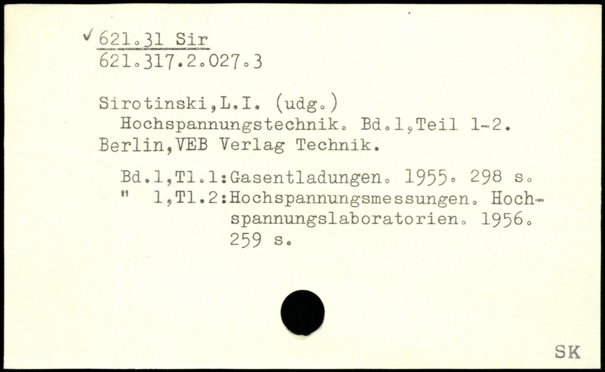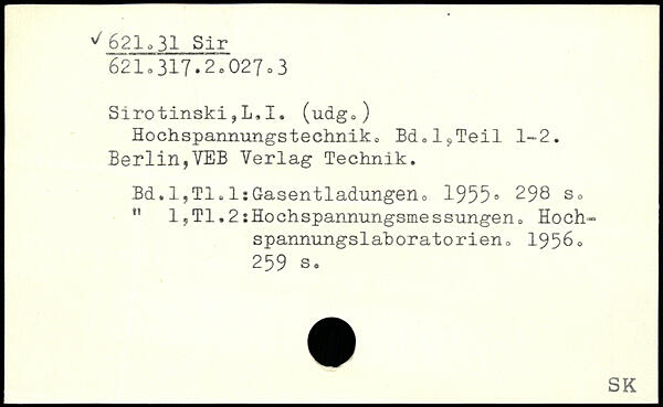 Hochspannungstechniko Bd,l?Teil 1-2. Berlin,VEB Verlag Technik.