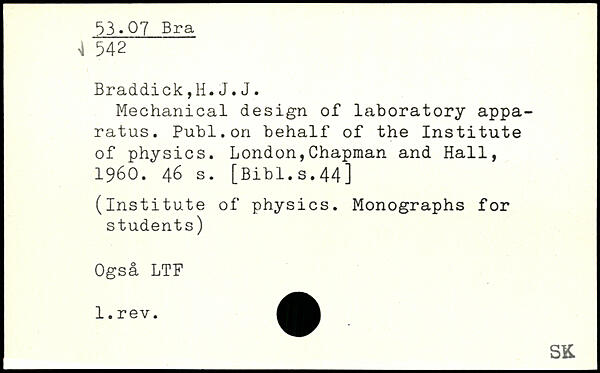 Mechanical design of laboratory apparatus. Publ.on behalf of the Institute of physics.