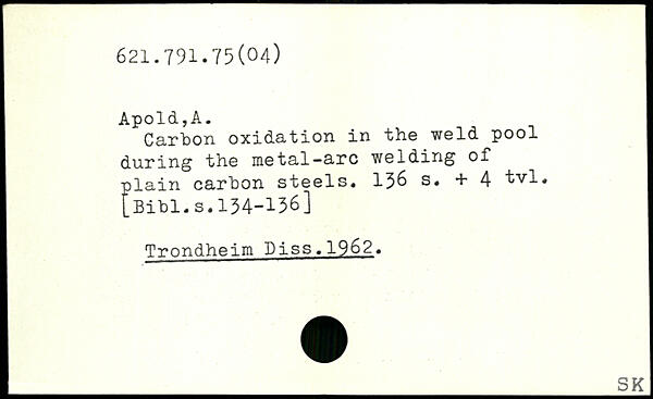 Carbon oxidation in the weld pool during the metal-arc welding of plain carbon steels.