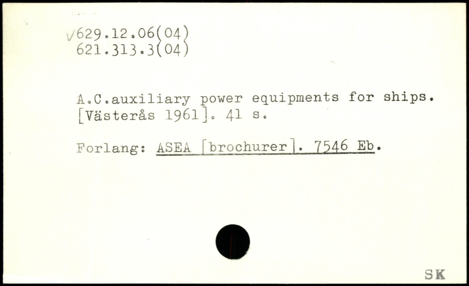 A.C.auxiliary power equipments for ships. [Vasteras 1961].