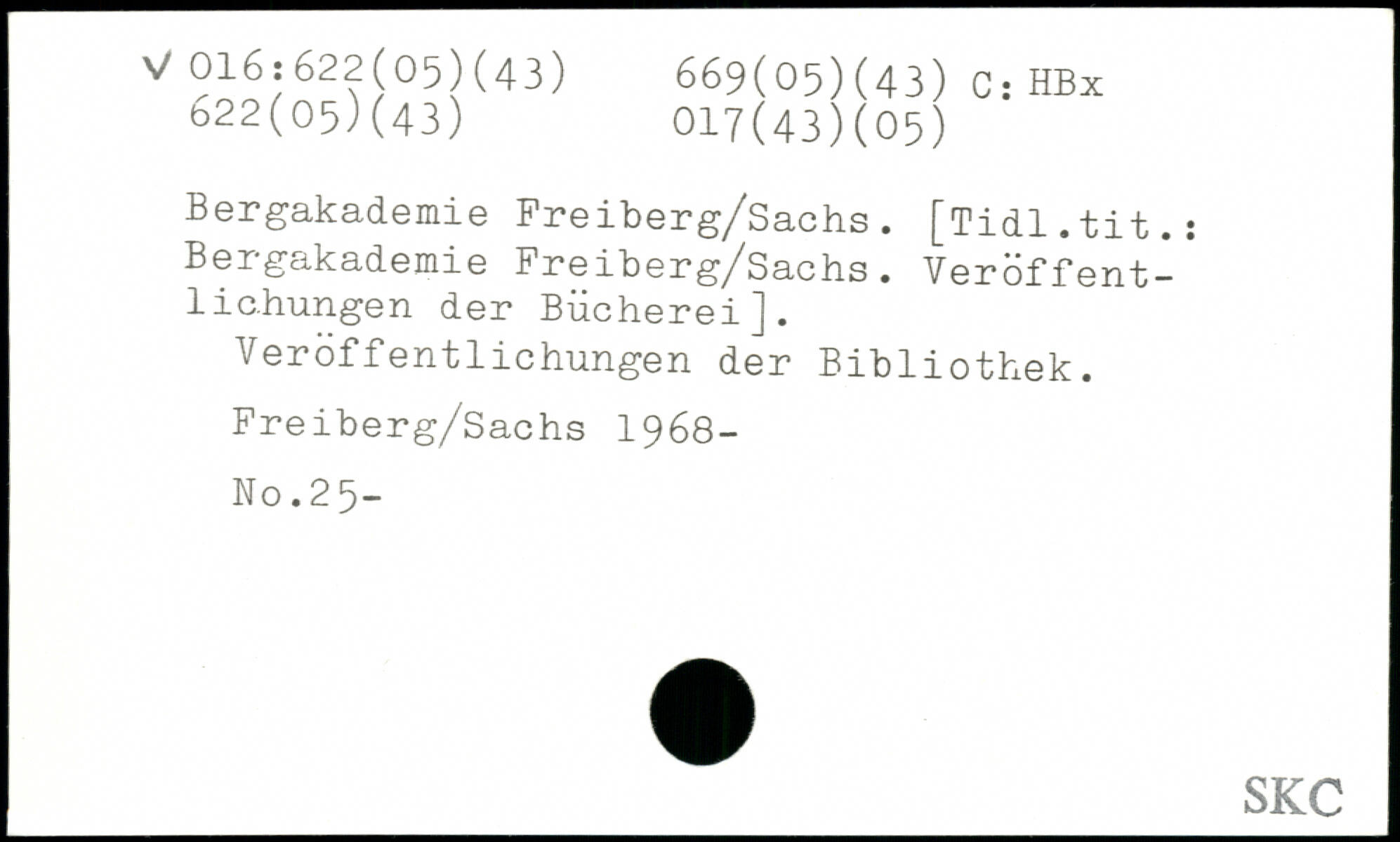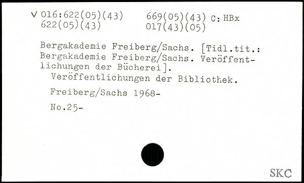 Bergakademie Preiberg/Sachs. [Tidl.tit.s Bergakademie Freiberg/Sachs. Veröffentlichungen der Bücherei]. Veröffentlichungen der Bibliothek. Freiberg/Sachs 1968- No.25-