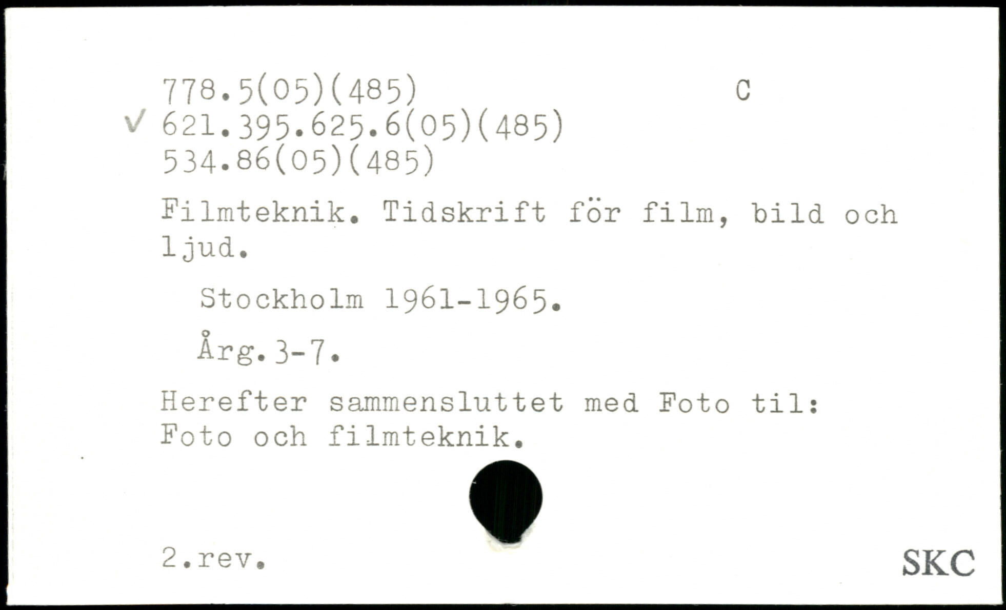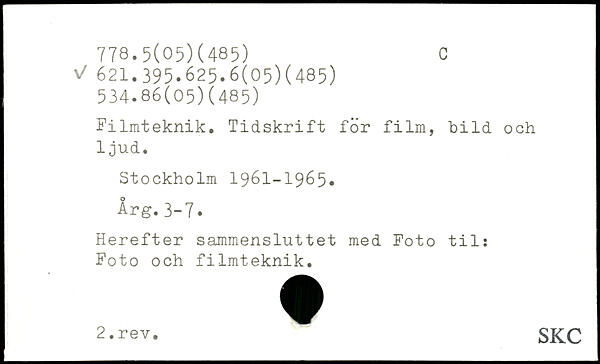 Filmteknik. Tidskrift för film, bild och 1 jud.