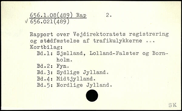 Rapport over Vejdirektoratets registrering og stédfæstelse af trafikulykkerne .,, Kortbilag: Bd.l: Sjælland, Lolland-Falster og Born-holm..