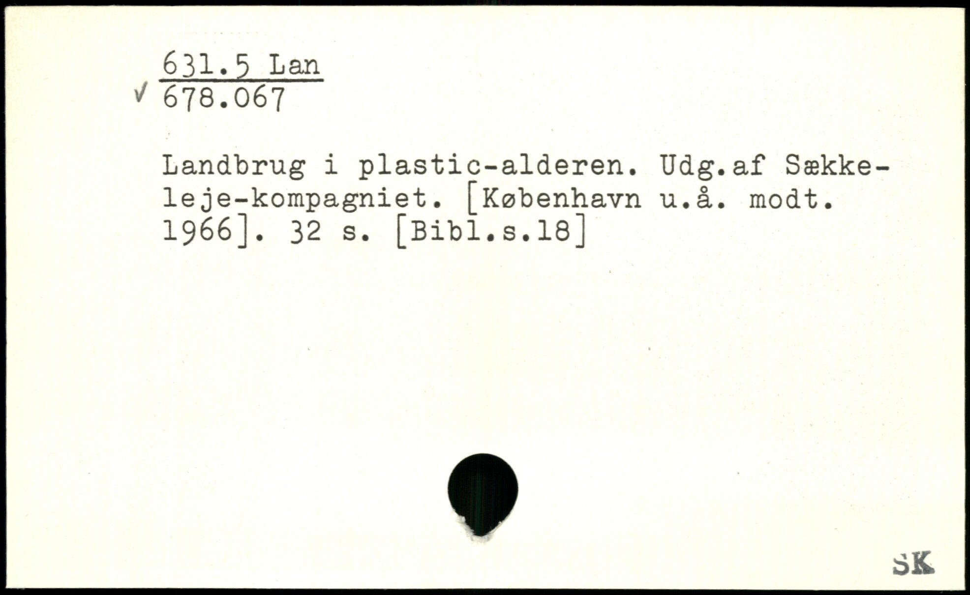 Landbrug i plastic-alderen. Udg.af Sækkele je-kompagniet. [København u.å. modt. 1966].