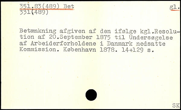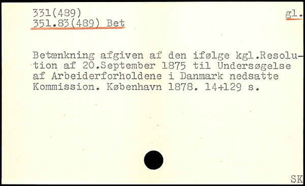 Betænkning afgiven af den ifølge kgl.Resolution af 20.September 1875 til Undersøgelse af Arbeiderforholdene i Danmark nedsatte Kommission.