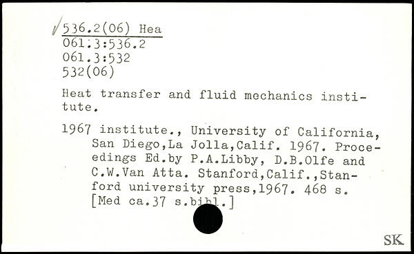 Heat transfer and fluid mechanics institute. 1967 institute., University of California, San Diego,La Jolla,Calif. 1967. Proceedings Ed.by P.A.Libby, D.B.Olfe and C.W.Van Atta.